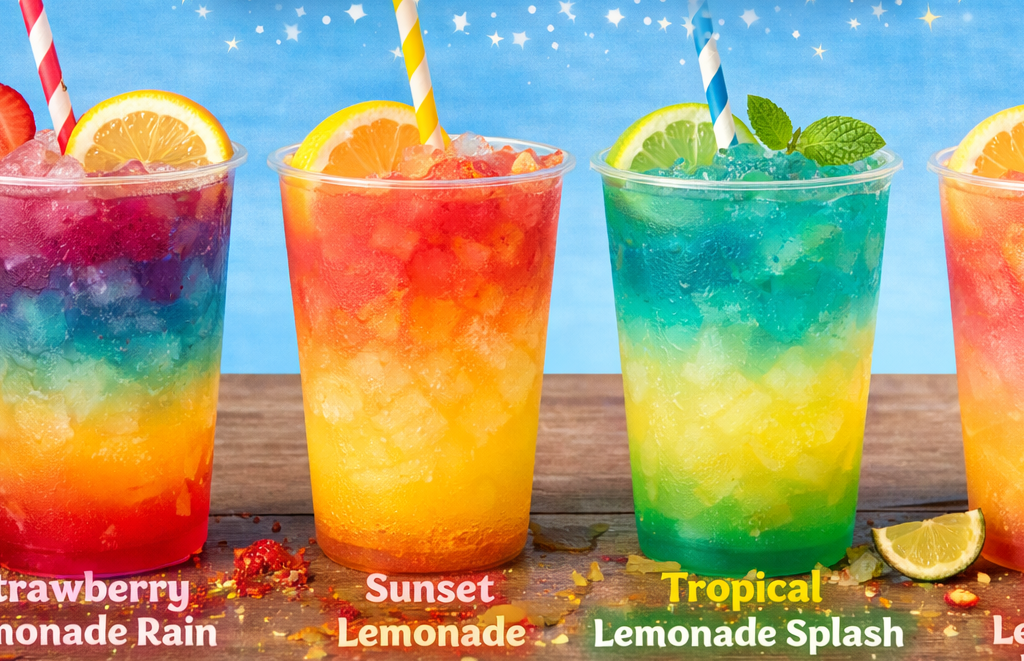 Crafted with fresh lemon base and infused with vibrant fruit blends, this lemonade delivers a layered burst of sweet and tart in every sip. Crisp. Colorful. Confident.